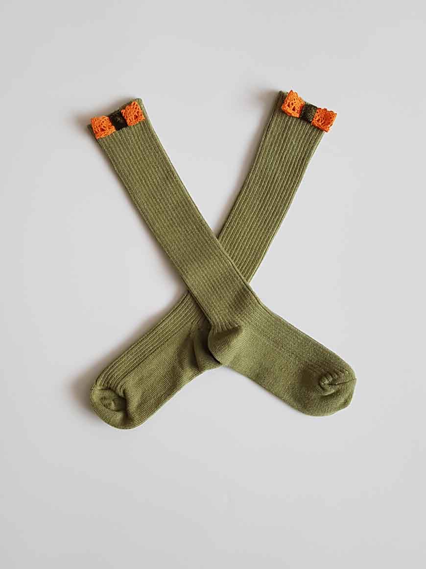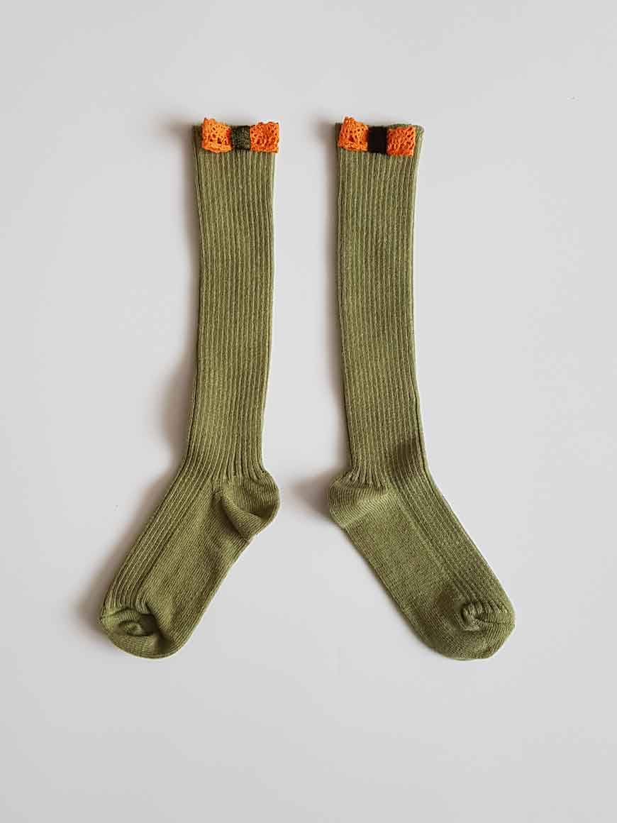Kız Çocuk Dizaltı Çorap Yeşil Turuncu Fiyonk Kız Çocuk Dizaltı Çorap Yeşil ...