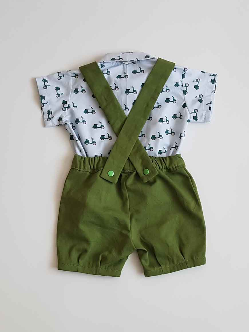Erkek Bebek ve Çocuk İkili Takım | Vespa Desenli Gömlek ve Askılı Şort Erkek Bebek ve Çocuk İkili Tak...
