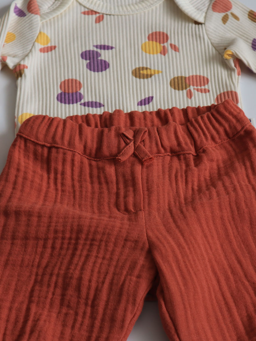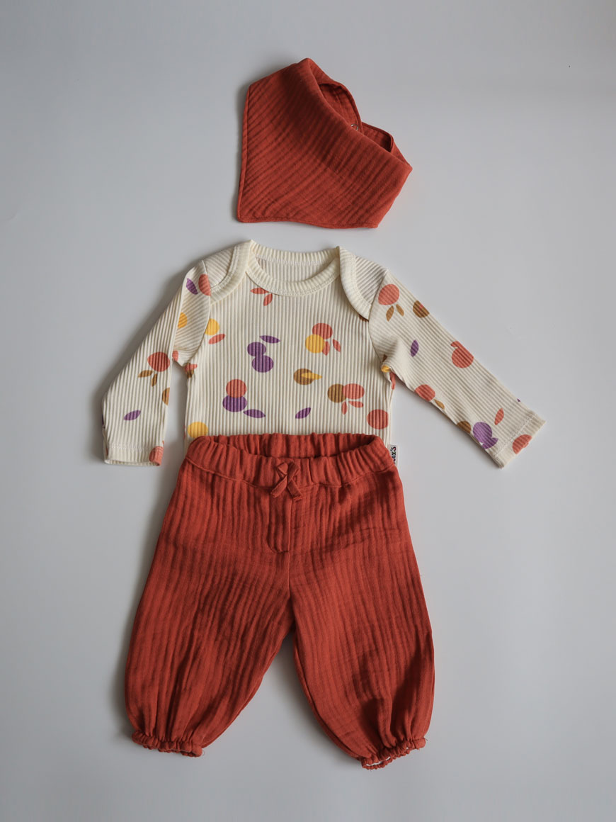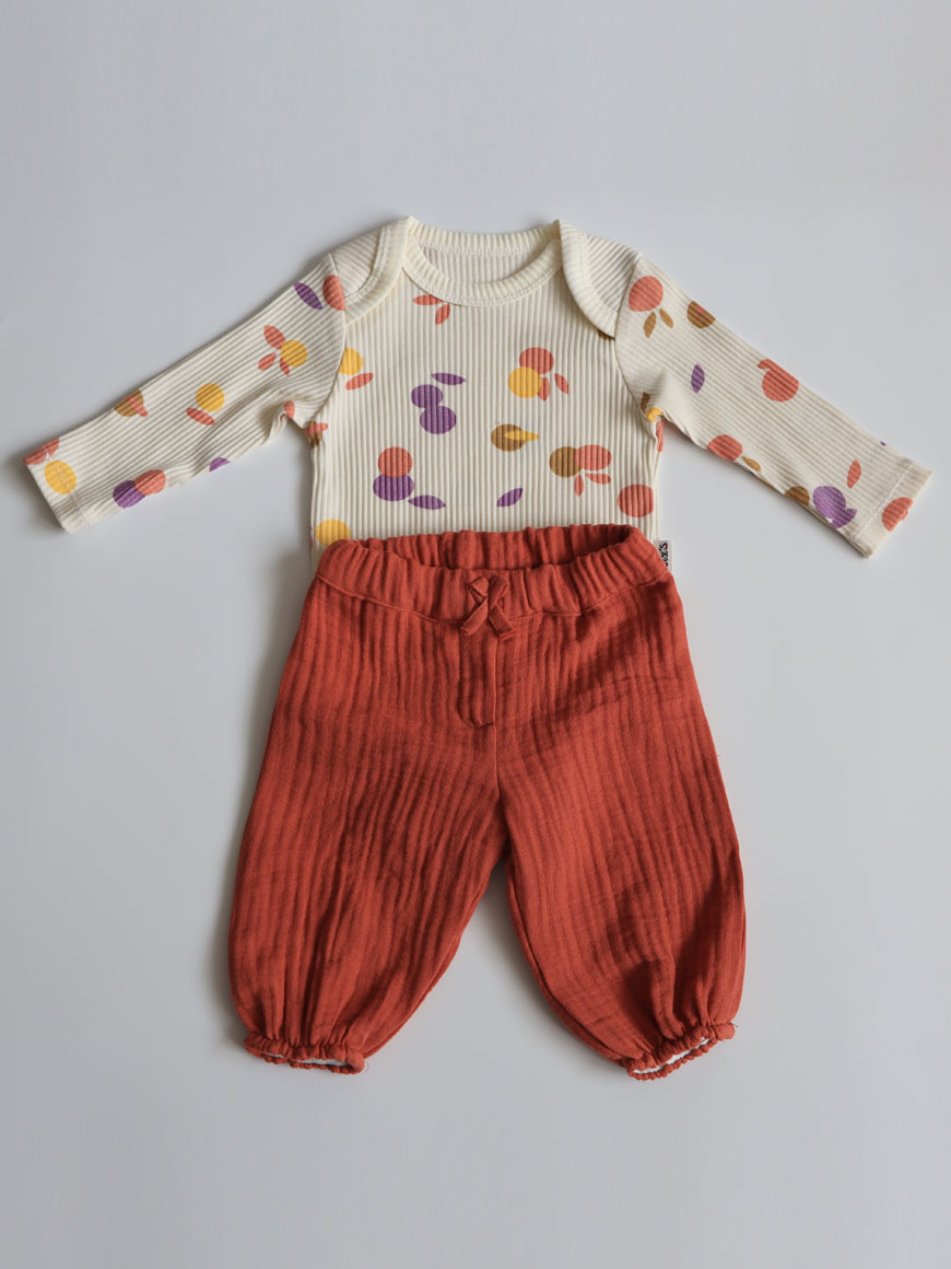 Fitilli kaşkorse Necix’s marka body. Pantolon ve yakalık müslin kumaştan hazırlanmıştır.