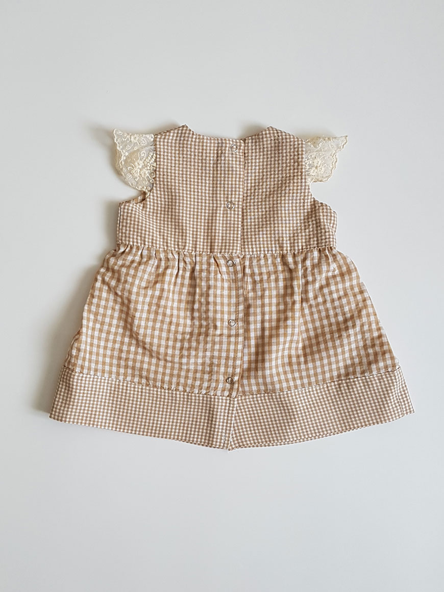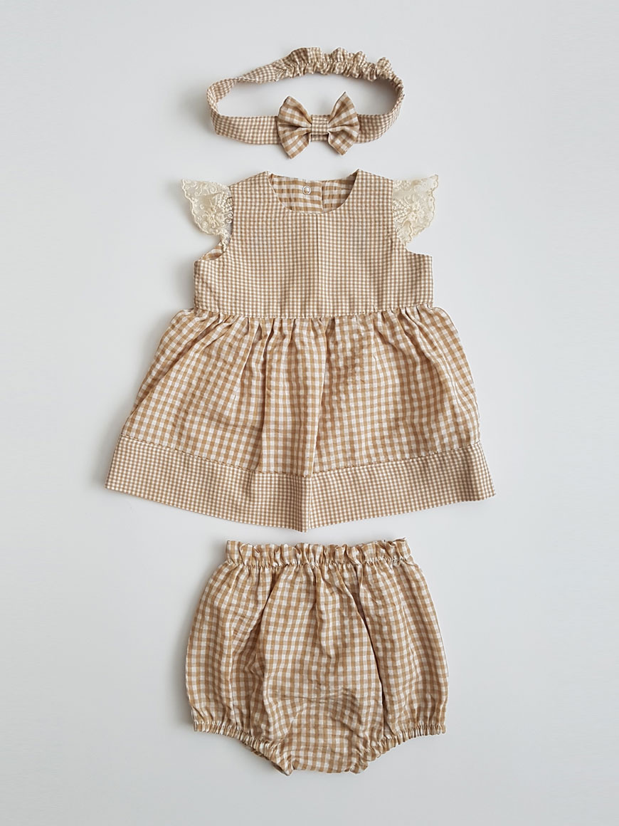 Kız bebek ve kız çocuk potikare elbise şortlu takım. Pamuk kumaş. Omuzları dantel fırfırlı. Arkadan çıt çıtlı. Saç bantlı. Özel tasarım. Özel dikim.