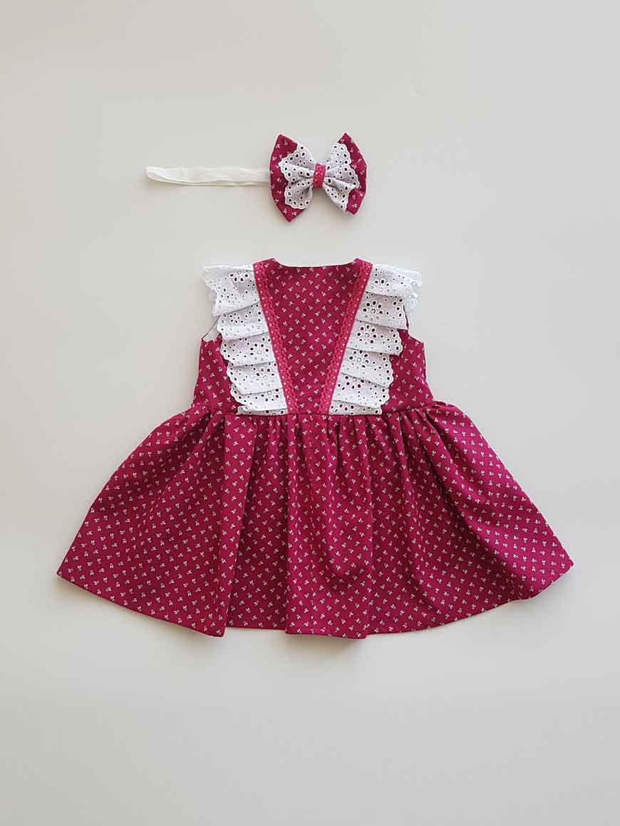 Yazlık pamuk kumaştan hazırlanmıştır. Önden bele kadar çıt çıtlıdır. Saç bantlıdır. Özel dikim ve özel tasarımdır.