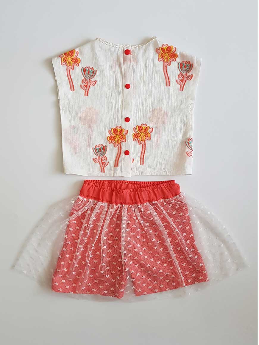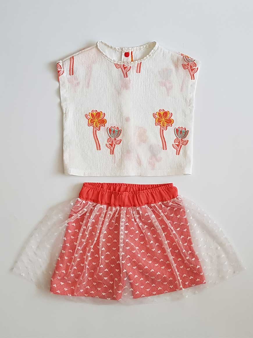 Alt pamuk dökümlü kumaştan şort üzerine tül etek ile hazırlanmıştır.