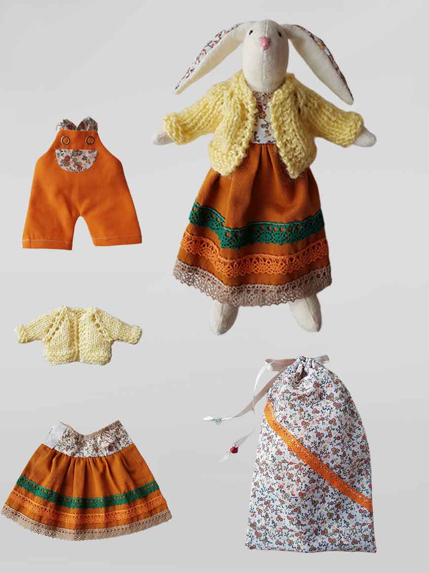 Malzemeler: Kumaş, İp, boncuk elyaf, yün, düğme, cırt